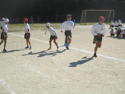 陸上記録会最後の種目、1000mリレーの記録を今日の中間休みにとりました。5,6年生の男女それぞれの代表4人がバトンを繋ぎました。グラウンドには全校児童も応援に駆けつけ、大きな声援を送りました。こんなところが高泊の良さですね。そのため、練習以上のタイムが出たようです。